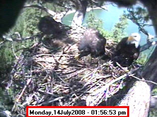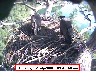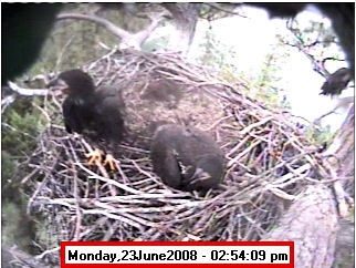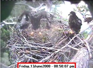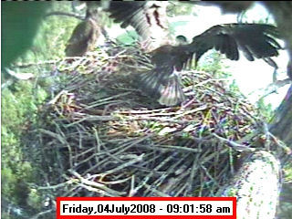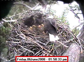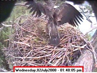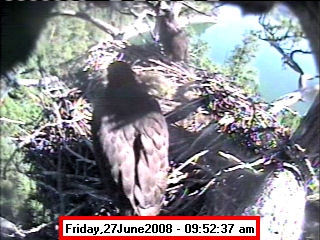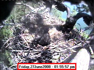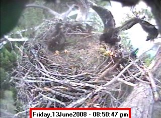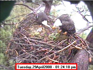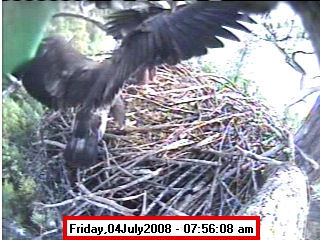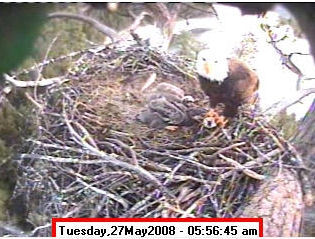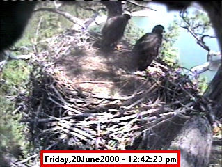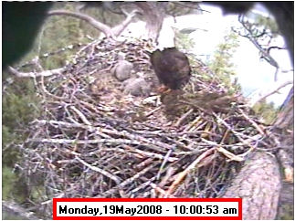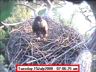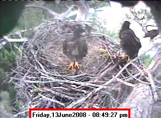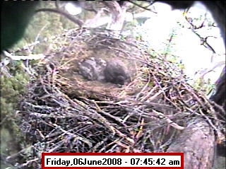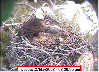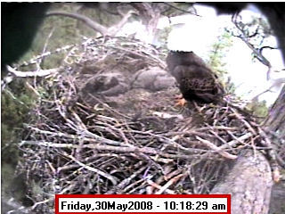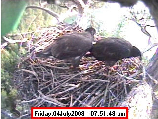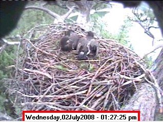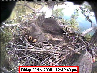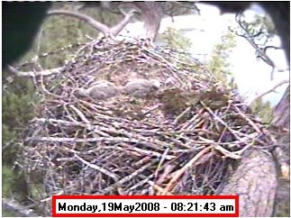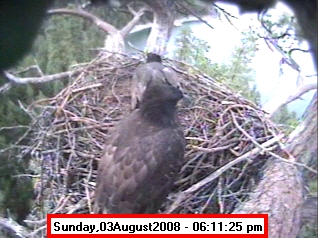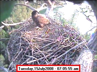 Based on past experience, look for eggs in mid to late March, chicks in late April, and fledging in mid July. |