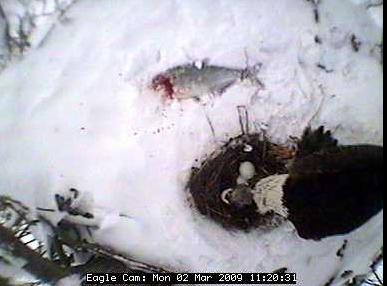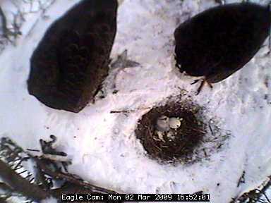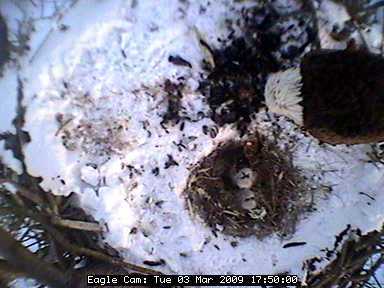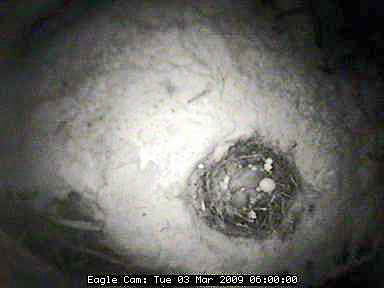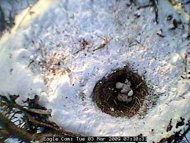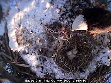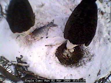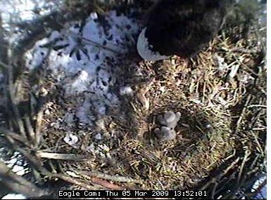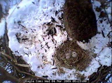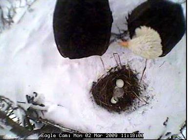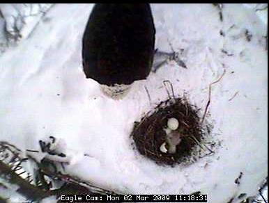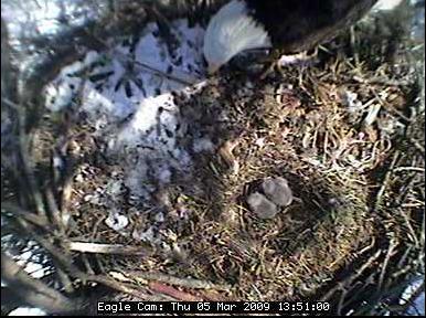 The nest is located about 80 feet up in the air in a tree in the Blackwater National Wildlife Refuge in Cambridge on Maryland's Eastern Shore. In the four years the camera has been on line, the pair has successfully raised nine eaglets - three chicks in 2005 and two in 2006, 2007 and 2008.
